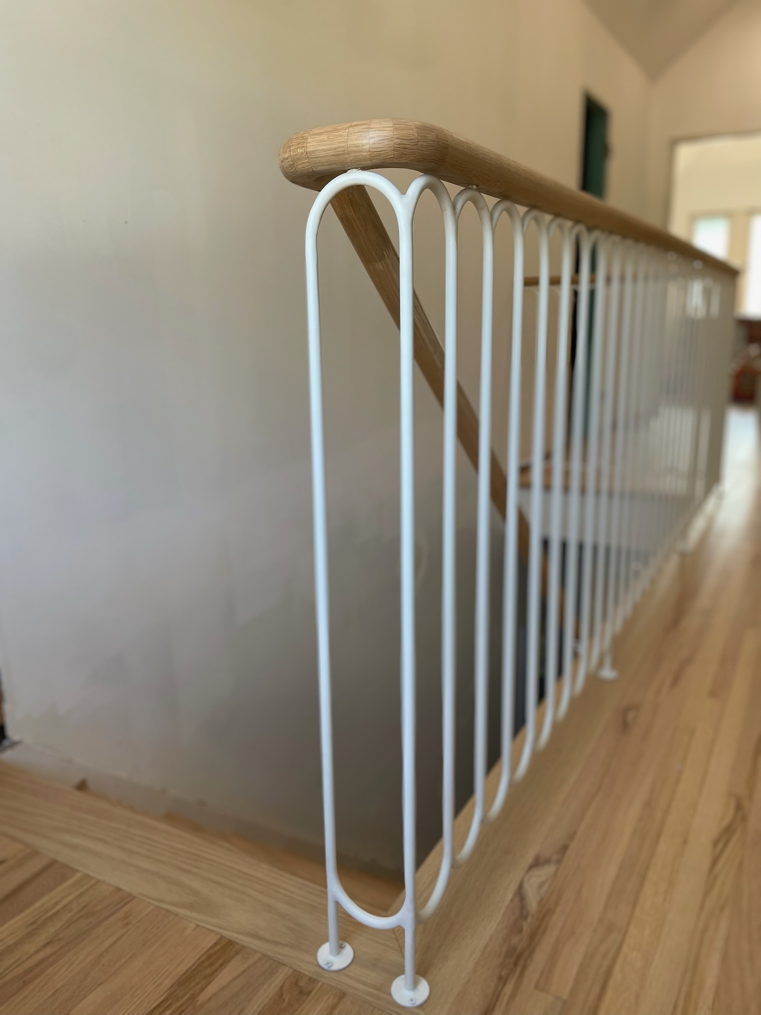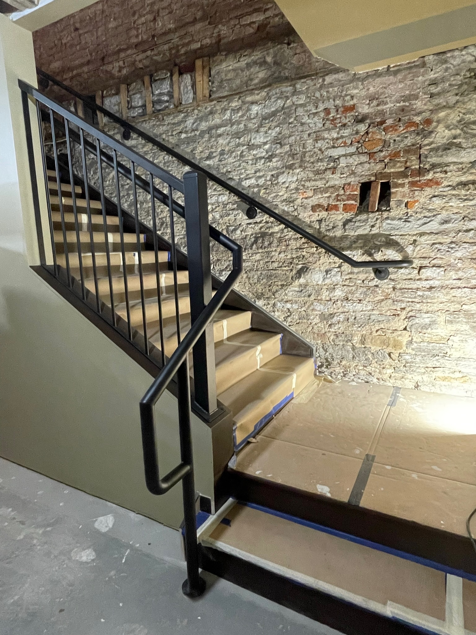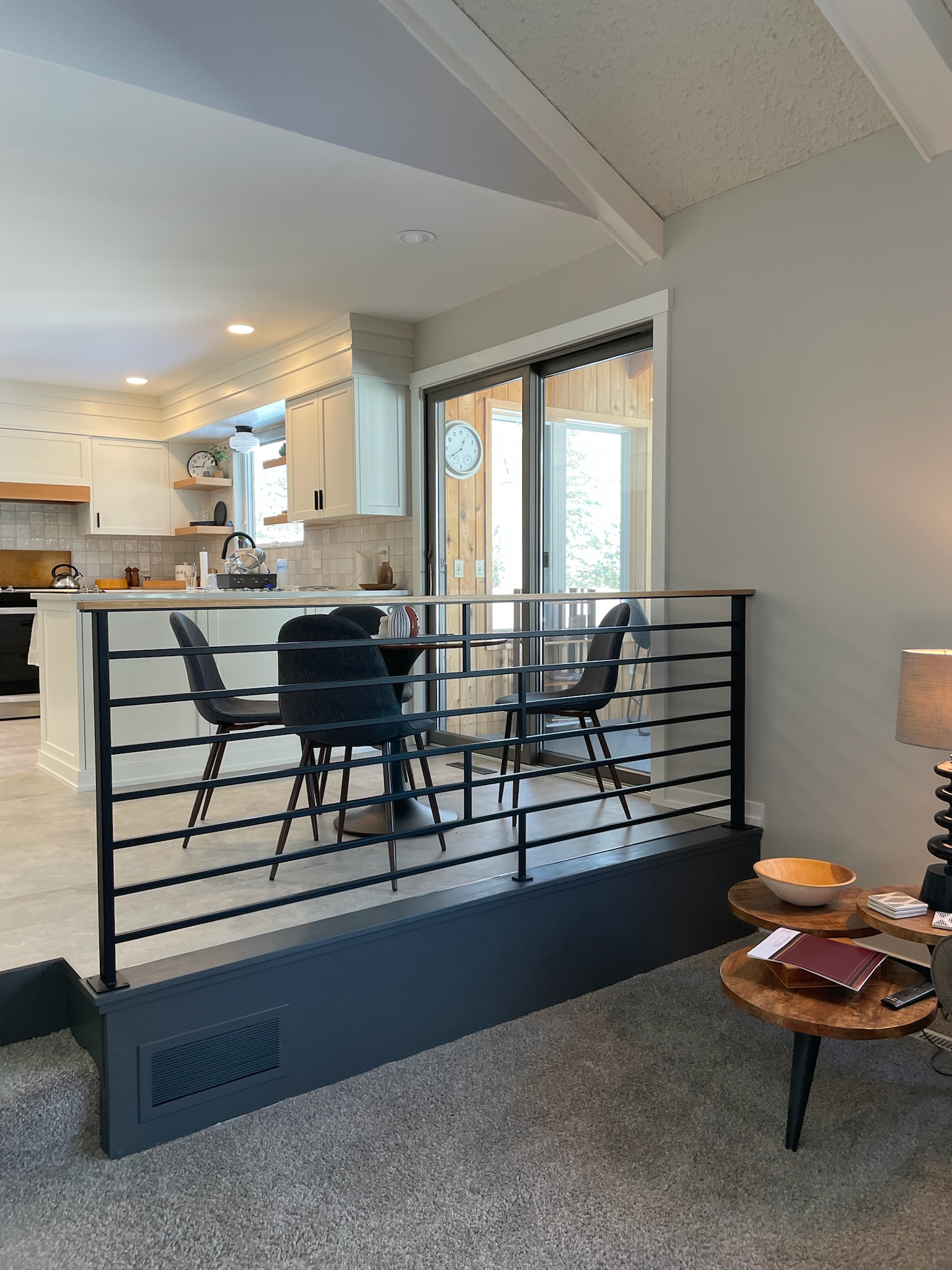 Custom metal railing to replace half walls—bringing light, openness, and a modern edge to the space.