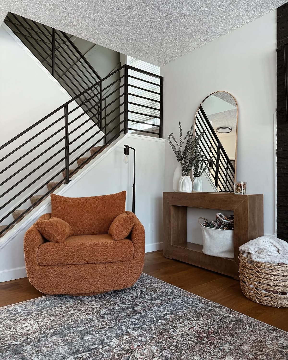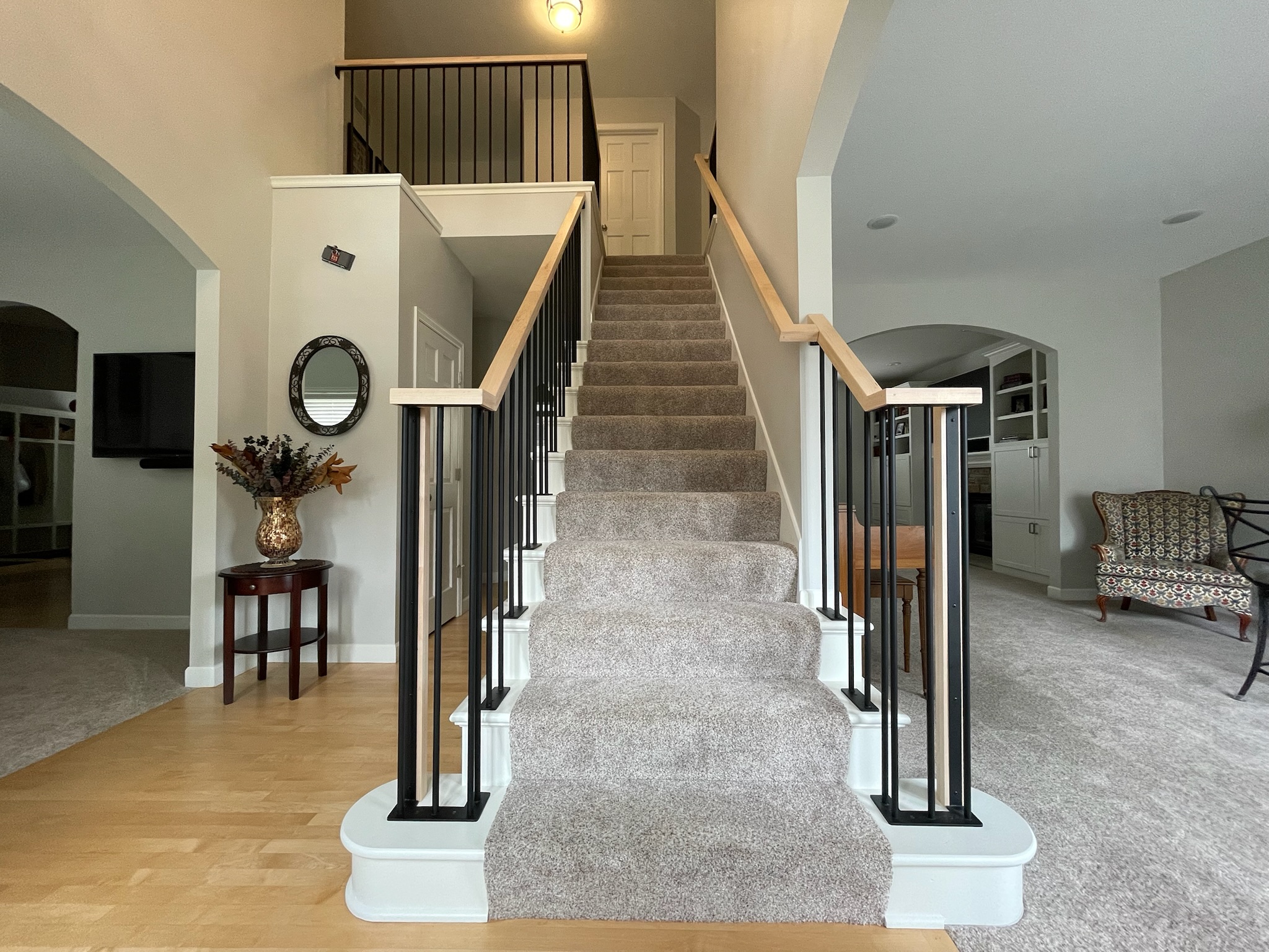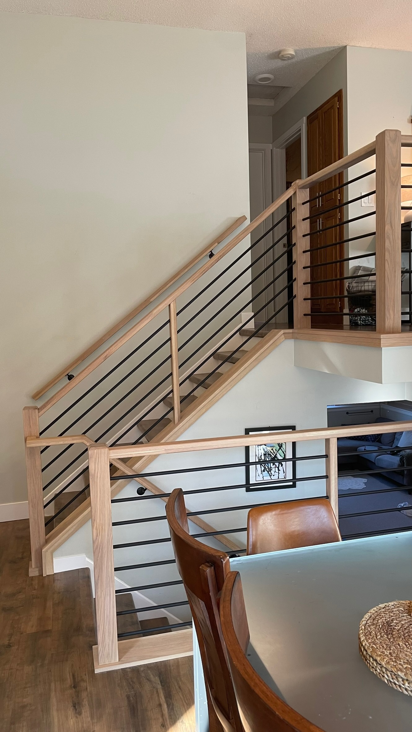 Custom metal railing to replace half walls—bringing light, openness, and a modern edge to the space.